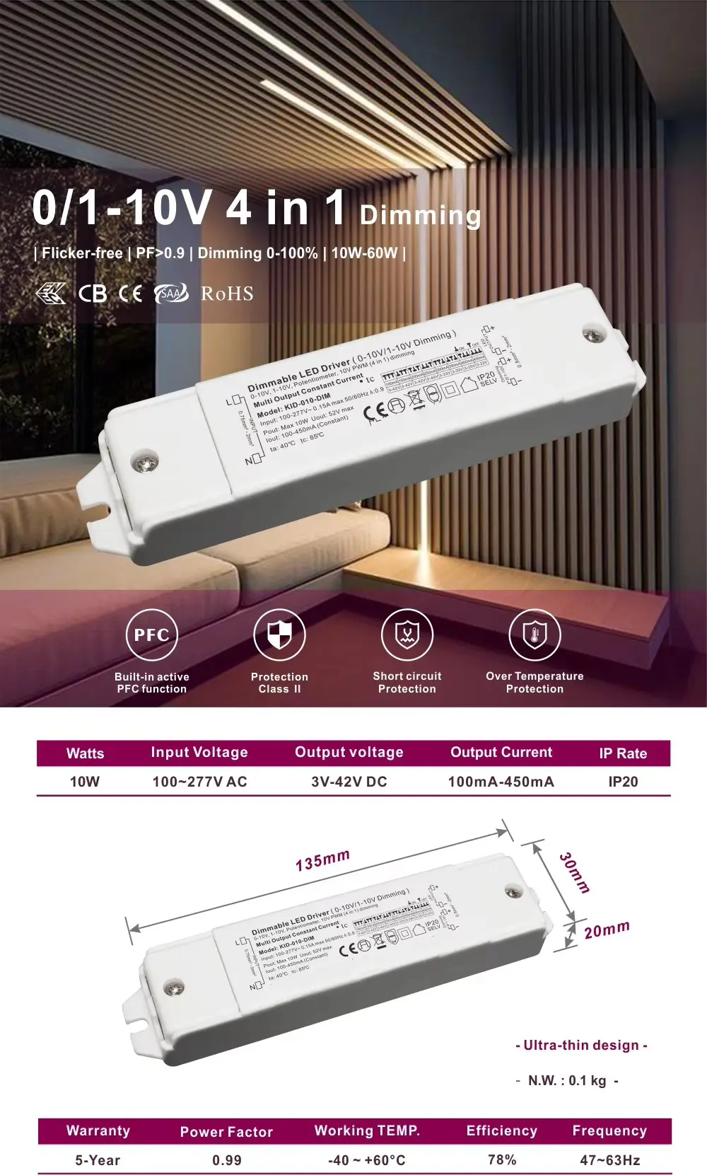 Nâng tầm các dự án chiếu sáng trong nhà của bạn với Dòng sản phẩm Điều chỉnh độ sáng 0/1-10V / 10VPWM/Chiết áp (4 trong 1) tiên tiến của STARWELL. Mô-đun tất cả trong một này hợp nhất bốn khả năng tín hiệu điều chỉnh độ sáng riêng biệt thành một thiết bị mạnh mẽ, duy nhất, được thiết kế để mang lại hiệu suất hoàn hảo với hệ thống đèn LED 10-60W. Được thiết kế dành cho các nhà tích hợp, người lắp đặt và kỹ sư yêu cầu sự linh hoạt, độ tin cậy và sự đơn giản, nó là cầu nối chắc chắn giữa hệ thống điều khiển của bạn và hệ thống chiếu sáng hoàn hảo.
