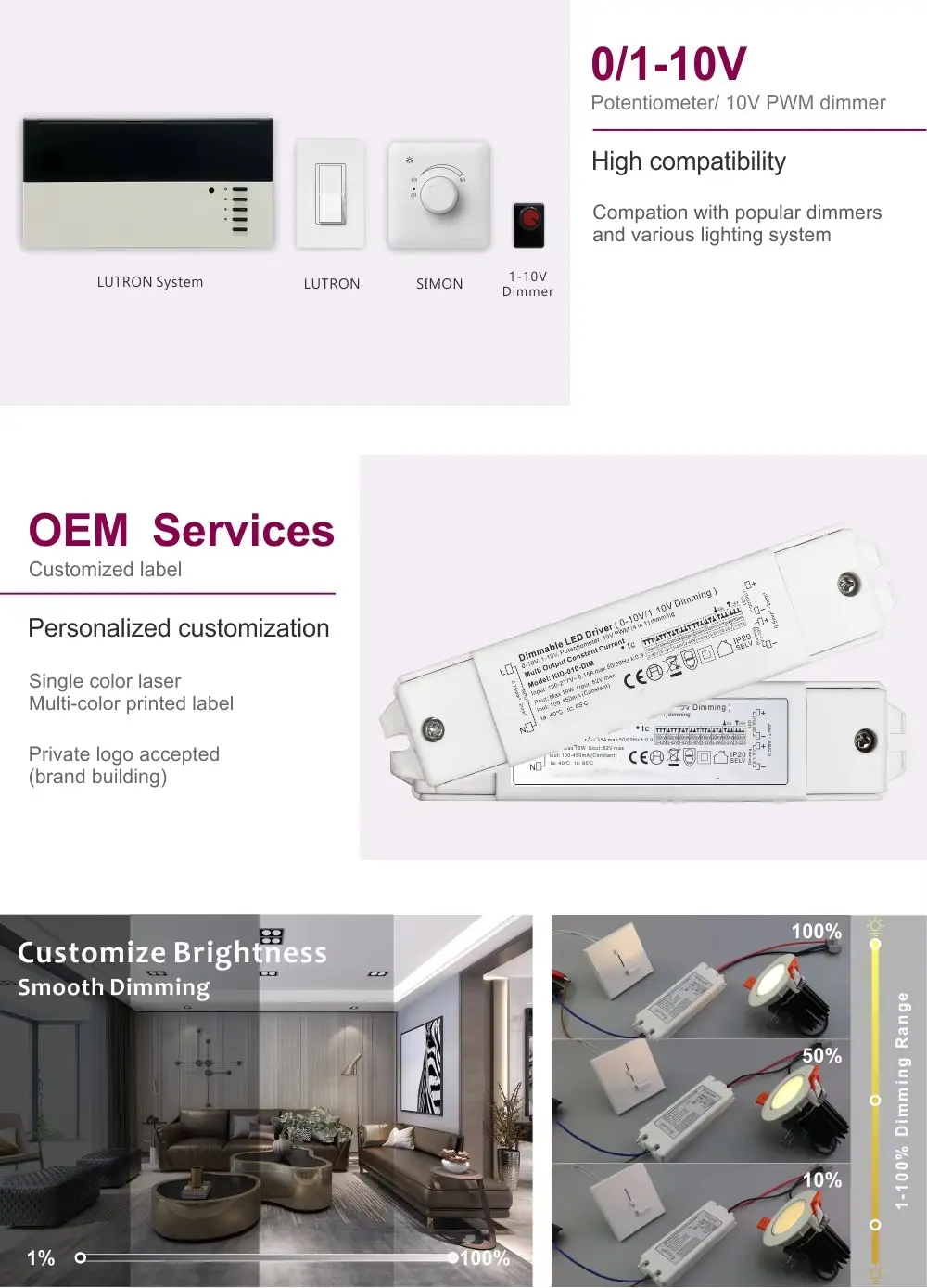 Triac & 0-10V 1-10V Có thể điều chỉnh độ sáng |