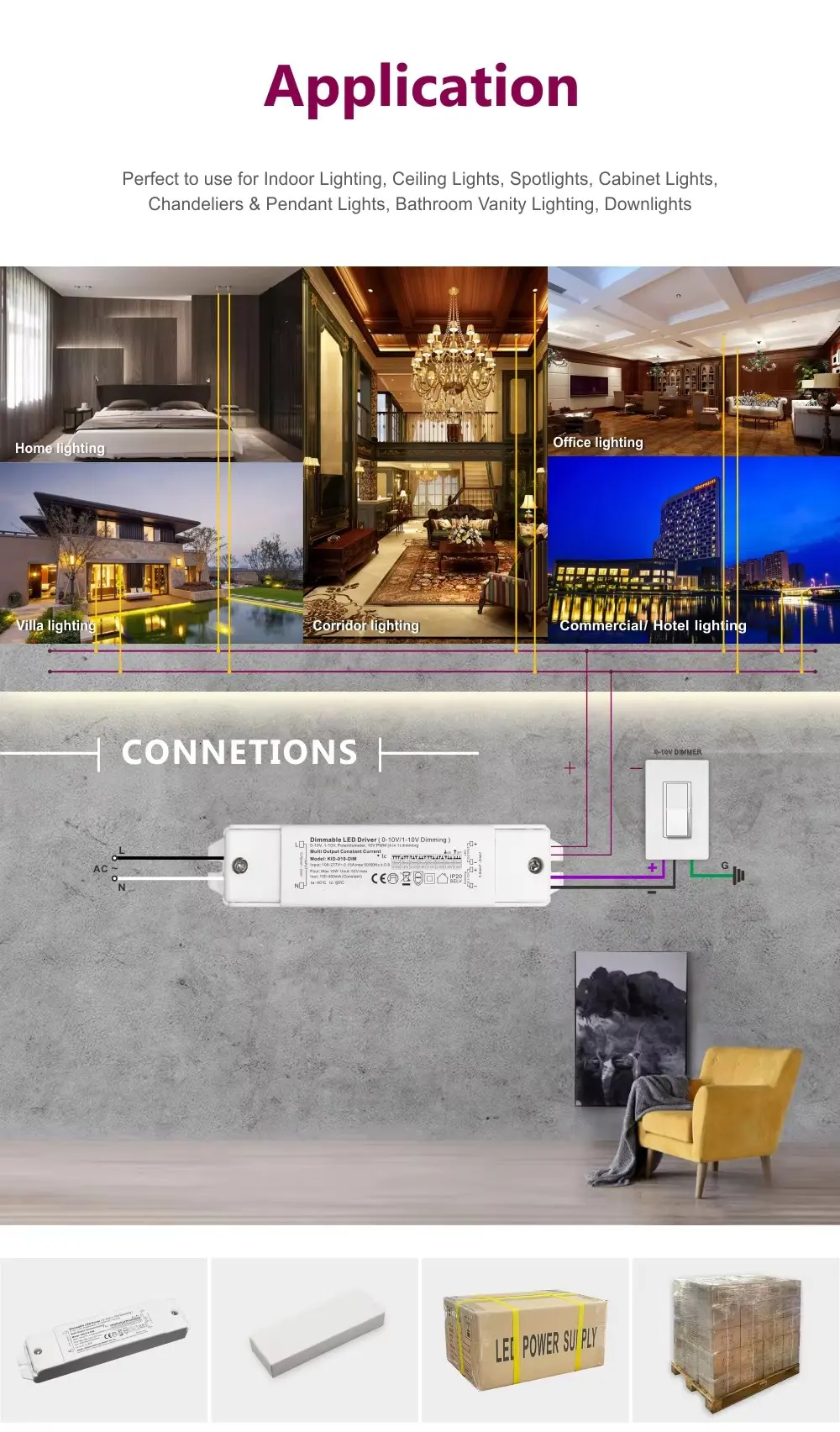 Cải tạo thương mại: Nâng cấp khả năng điều khiển ánh sáng trong văn phòng hoặc không gian bán lẻ đồng thời tận dụng hệ thống dây điều khiển 1-10V hiện có hoặc bảng điều khiển kỹ thuật số mới.