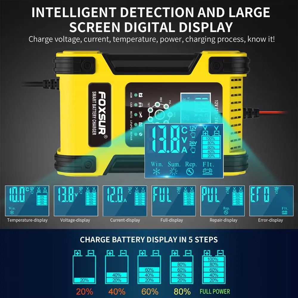 Không giống như các bộ sạc khác trên thị trường, Bộ sạc pin axit chì thông minh 12V 24V 12A 7 đoạn cung cấp các tính năng an toàn mở rộng để bảo vệ cả pin và bộ sạc của bạn.