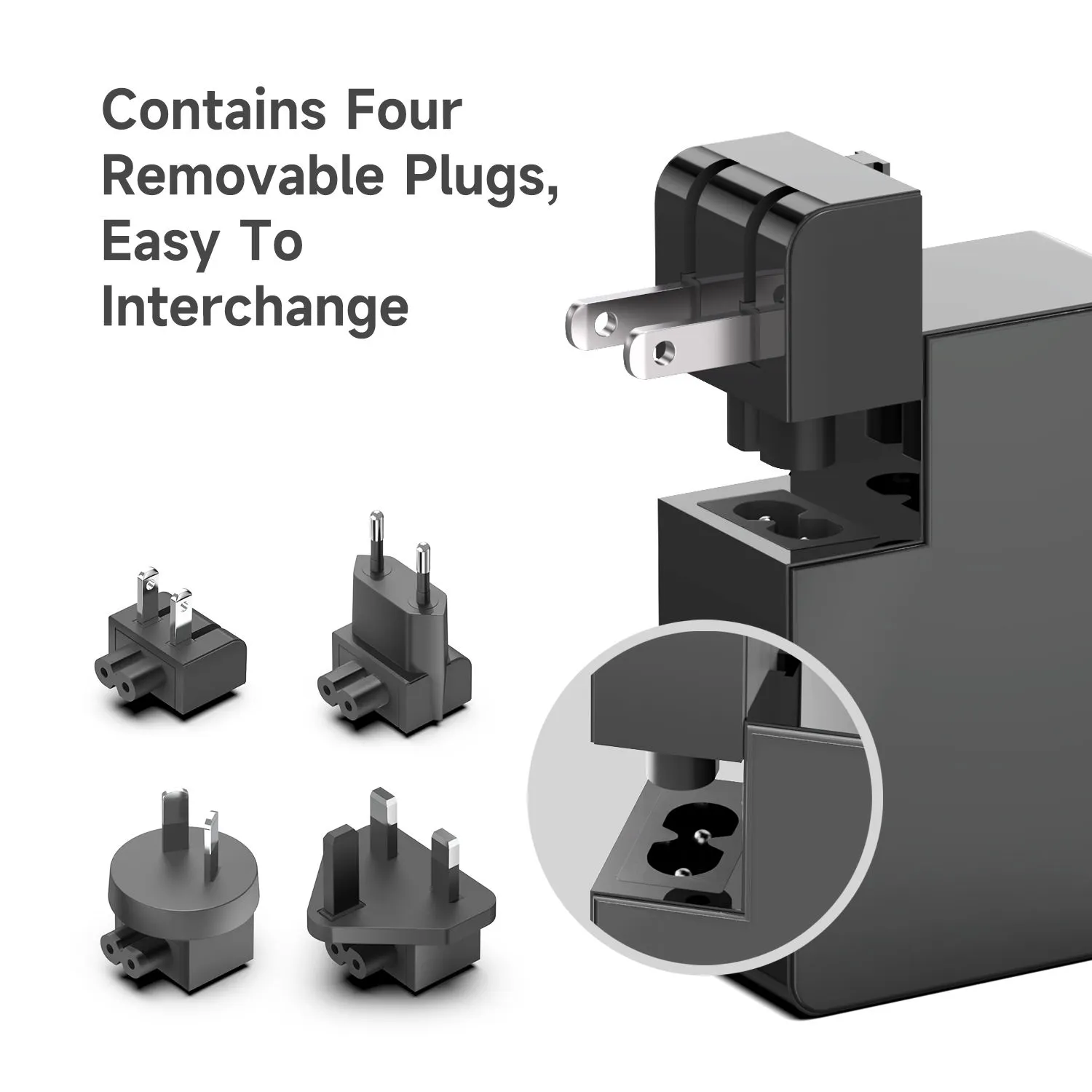 Phích cắm đa tiêu chuẩn: Bộ đổi nguồn STARWELL được trang bị 4 loại phích cắm gắn vào (Mỹ, EU, Anh và AU), không cần thêm bộ chuyển đổi khi di chuyển xuyên biên giới.