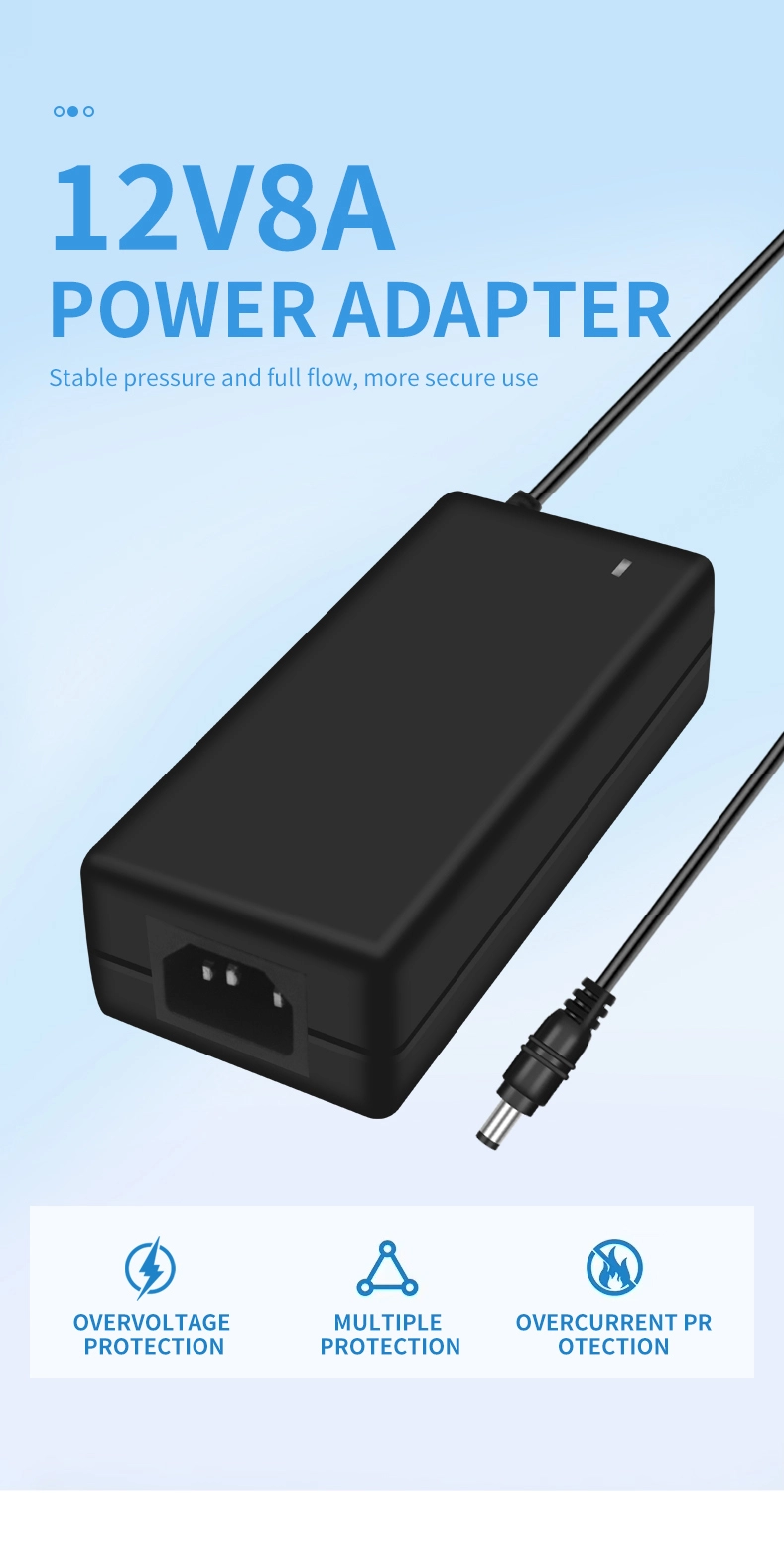 Với công suất định mức 96W, dòng điện đầu ra của bộ đổi nguồn 96W ổn định ở mức đỉnh 8A và độ chính xác điện áp được kiểm soát trong phạm vi ±5% (điện áp không tải: 12,1V; điện áp đầy tải: 11,8V). Nó có thể đáp ứng nhu cầu cấp nguồn đồng thời của nhiều thiết bị (ví dụ: 2 thiết bị 48W song song). Cáp đầu ra lõi đồng nguyên chất đảm bảo mức giảm điện áp ≤0,3V, duy trì hiệu suất không bị suy giảm trong quá trình truyền dòng điện cao.