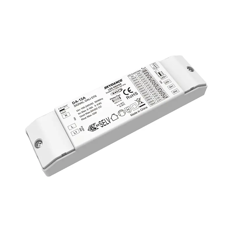 Trình điều khiển đèn LED có thể điều chỉnh độ sáng DALI hiện tại không đổi 12W chất lượng cao của nhà máy STARWELL là lõi hiệu suất cao cho hệ thống chiếu sáng thông minh, tương thích với các giao thức DALI toàn cầu và đầu vào rộng AC 100-240V. Trình điều khiển LED có thể điều chỉnh độ sáng DALI mang lại đầu ra dòng điện ổn định không đổi (có thể điều chỉnh 100-900mA) với độ chính xác ±5%, đảm bảo độ sáng nhất quán trên các thiết bị. Với công nghệ làm mờ T-PWM, nó đạt được độ mờ cực sâu 0,0001%-100% mà không nhấp nháy, đáp ứng các tiêu chuẩn IEEE 1789 để tạo sự thoải mái cho mắt. Với PF>0,95 và hiệu suất lên tới 87%, nó giúp giảm lãng phí năng lượng, đồng thời cấp độ bảo vệ IP20 và phạm vi nhiệt độ hoạt động -20~50°C phù hợp với các tình huống dân dụng, thương mại và công nghiệp.