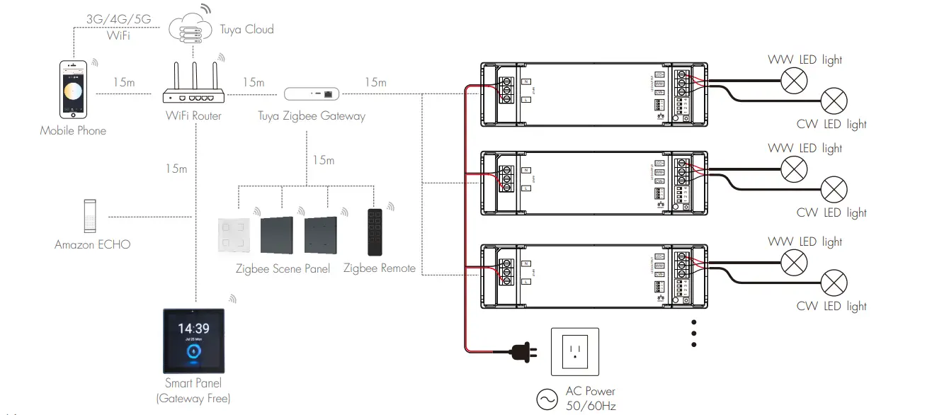 Trình điều khiển LED TUYA Zigbee hỗ trợ đầy đủ giao thức TUYA Zigbee để kết nối không dây ổn định, đạt được CCT không nhấp nháy mượt mà và giảm độ sáng. Nó hỗ trợ điều khiển APP, điều khiển bằng giọng nói, điều khiển nhóm và chế độ cảnh, mang lại sự tiện lợi lớn cho hệ thống chiếu sáng thông minh.