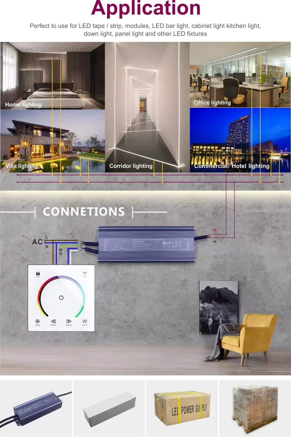 Có sẵn từ 10W đến 360W, bộ điều khiển điện áp không đổi này cung cấp năng lượng một cách đáng tin cậy cho các dải đèn LED, mô-đun và thiết bị cố định tuyến tính trong thời gian dài. Đó là sự lựa chọn lý tưởng cho: