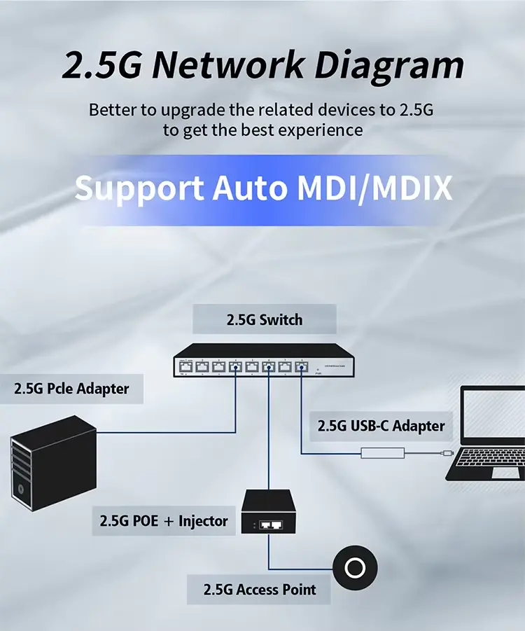 Luôn dẫn đầu về băng thông với khả năng hỗ trợ tốc độ dữ liệu 2,5Gbps, tương thích ngược hoàn toàn với các thiết bị 10/100/1000Mbps.