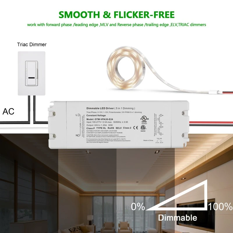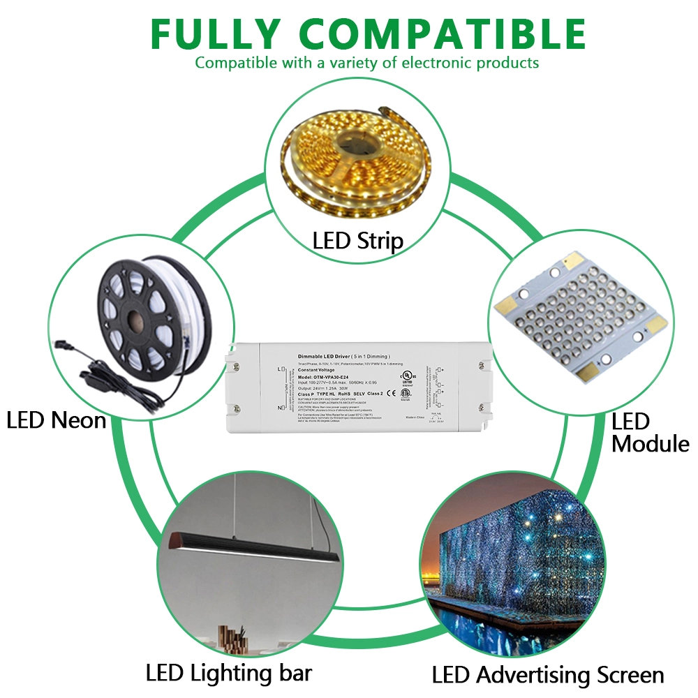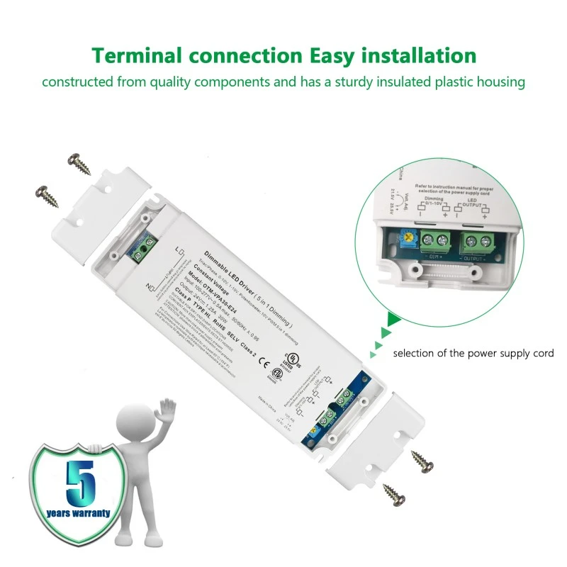 Trình điều khiển đèn LED điều chỉnh độ sáng điện áp không đổi 24V 30W 0-10V sang trọng của nhà máy STARWELL có thể cung cấp công suất đầu ra tối đa lên đến 30W và được thiết kế đặc biệt để đạt được khả năng điều khiển độ mờ liền mạch từ 0 đến 10V. Nó có đầu ra điện áp ổn định với hệ số gợn sóng ≤ 120mVp-p, đảm bảo hiệu suất chiếu sáng không nhấp nháy của các thiết bị LED. Dải điện áp đầu vào của nó rộng (100-240V AC, 50/60Hz), với hiệu suất chuyển đổi lên tới 88%, giúp vận hành tiết kiệm năng lượng. Nó cũng tuân thủ các tiêu chuẩn điện áp toàn cầu. Trình điều khiển LED 0-10V này được trang bị nhiều chức năng bảo vệ khác nhau để đảm bảo sử dụng đáng tin cậy và an toàn trong các ứng dụng chiếu sáng trong nhà và ngoài trời khác nhau.