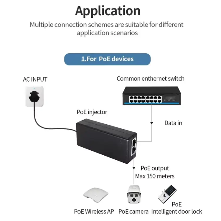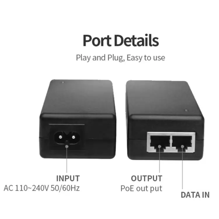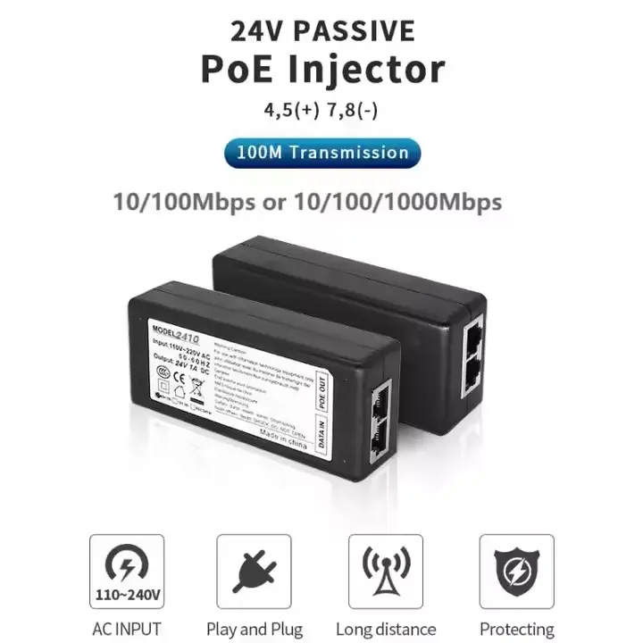 Bộ phun PoE thụ động này sử dụng truyền tải điện trực tiếp mà không cần bắt tay giao thức, giảm độ phức tạp của hệ thống và cải thiện khả năng tương thích với các thiết bị mạng cụ thể.