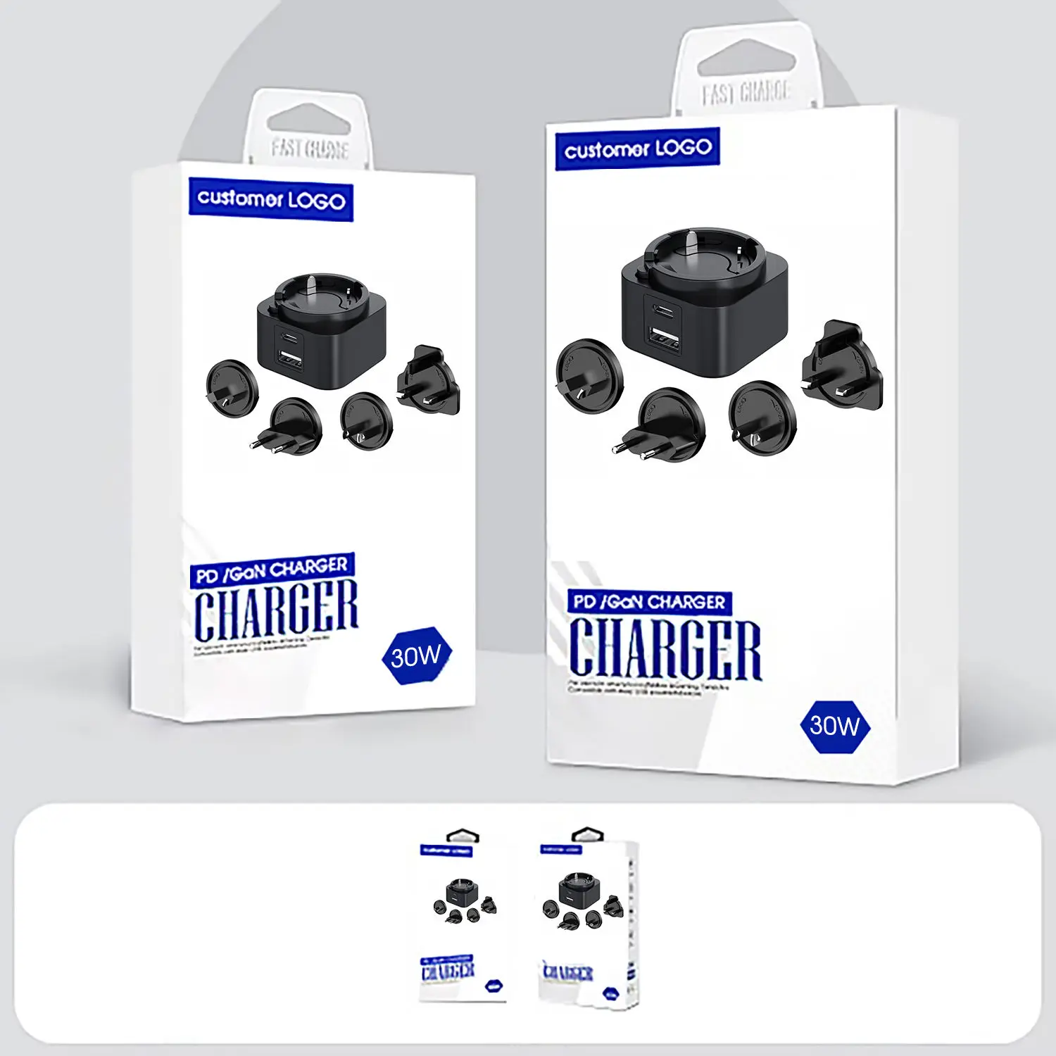 Bộ sạc PD gắn tường USB 30W có phích cắm có thể hoán đổi cho nhau |