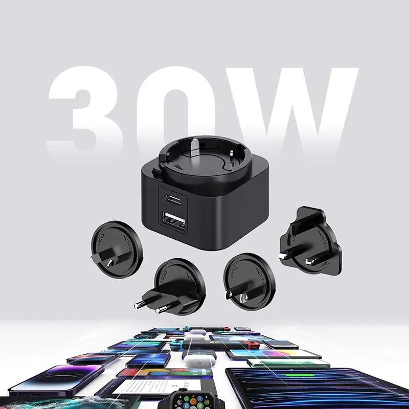 Bộ sạc PD phích cắm có thể hoán đổi 30W phù hợp cho gia đình, văn phòng và du lịch, đây là giải pháp sạc tất cả trong một cho cuộc sống di động hiện đại.