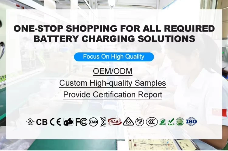 Q1: Bảo hành sản phẩm của bạn là gì? Trả lời: Chúng tôi cung cấp bảo hành 3 năm cho Bộ sạc pin của chúng tôi. Bộ điều hợp nguồn và Bộ nguồn LED, đồng thời nếu sản phẩm bị hỏng không đúng thiết kế, chúng tôi sẵn sàng thay thế vô điều kiện. Câu 2: Bạn có thể cung cấp loại bộ sạc pin nào? Trả lời: Chúng tôi có thể sản xuất Bộ sạc pin lithium, Bộ sạc pin axit chì, Bộ sạc pin LifePo4 và Bộ sạc pin NilMH trong phạm vi 30w-1000w.