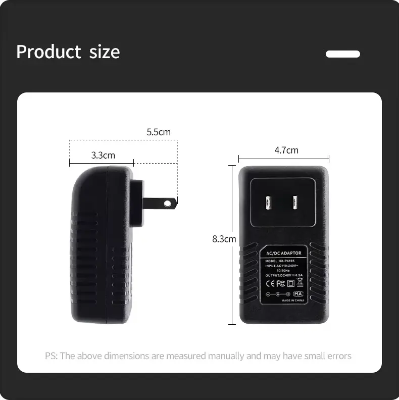 Đầu ra: 48V DC 500mA - Vui lòng không đặt hàng nếu thiết bị của bạn yêu cầu nhiều hơn 500 MilliAmps
