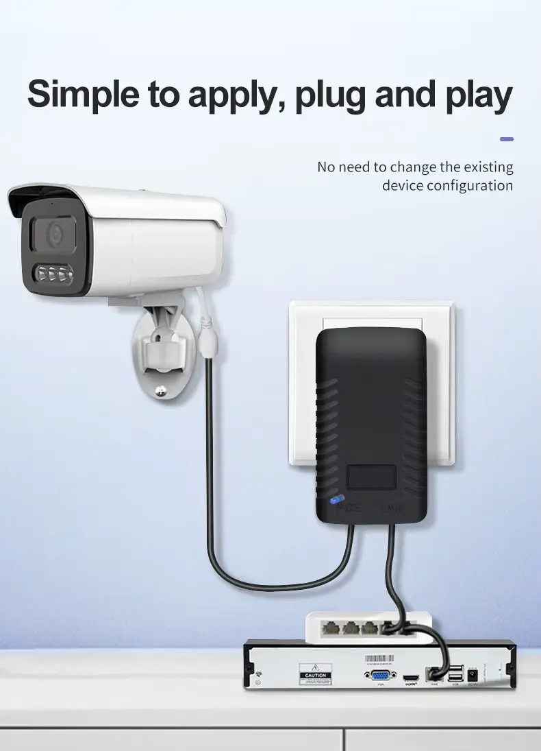 Camera IP tầm xa: Hoàn hảo để cấp nguồn cho camera PTZ 48V (Pan-Tilt-Zoom) hoặc camera dạng đầu được lắp đặt ở các địa điểm ở xa.