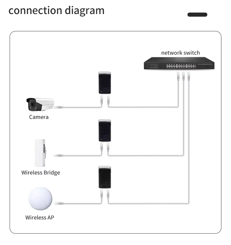Lưu ý quan trọng về khả năng tương thích: Đây là bộ cấy PoE thụ động. Nó không thực hiện bắt tay với thiết bị được kết nối. Vui lòng đảm bảo thiết bị thu của bạn được xếp hạng cụ thể cho PoE thụ động 48V (hoặc phạm vi bao gồm 48V) trước khi kết nối. Việc kết nối với thiết bị có điện áp 5V, 12V hoặc 24V có thể gây hư hỏng.