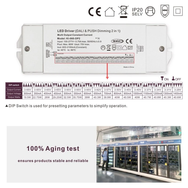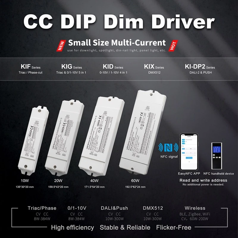 Là Trình điều khiển đèn LED CCT làm mờ DALI dòng không đổi 60W, nó áp dụng công nghệ điều khiển dòng không đổi vòng kín tiên tiến để đảm bảo dòng điện đầu ra (giá trị điển hình là 700mA, có thể được tùy chỉnh theo yêu cầu mô-đun LED của khách hàng) có độ ổn định cao. Thiết kế này có hiệu quả tránh được sự suy giảm ánh sáng hoặc độ lệch màu do sự dao động dòng điện của đèn LED gây ra, về cơ bản đảm bảo độ sáng lâu dài và tuổi thọ của đèn. Dải điện áp đầu vào rộng và đặc tính dòng điện đầu ra không đổi giúp nó tương thích hoàn hảo với nhiều thông số kỹ thuật khác nhau của đèn LED âm trần, đèn định vị, đèn bảng, đèn tuyến tính và mô-đun dải đèn.