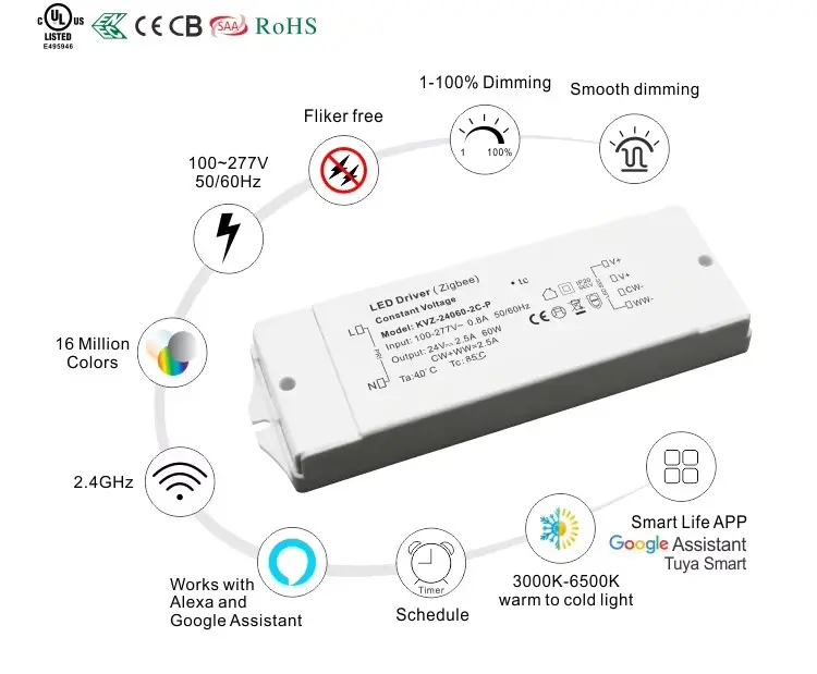 Trình điều khiển đèn LED có thể điều chỉnh độ sáng 60W TUYA Zigbee CCT
