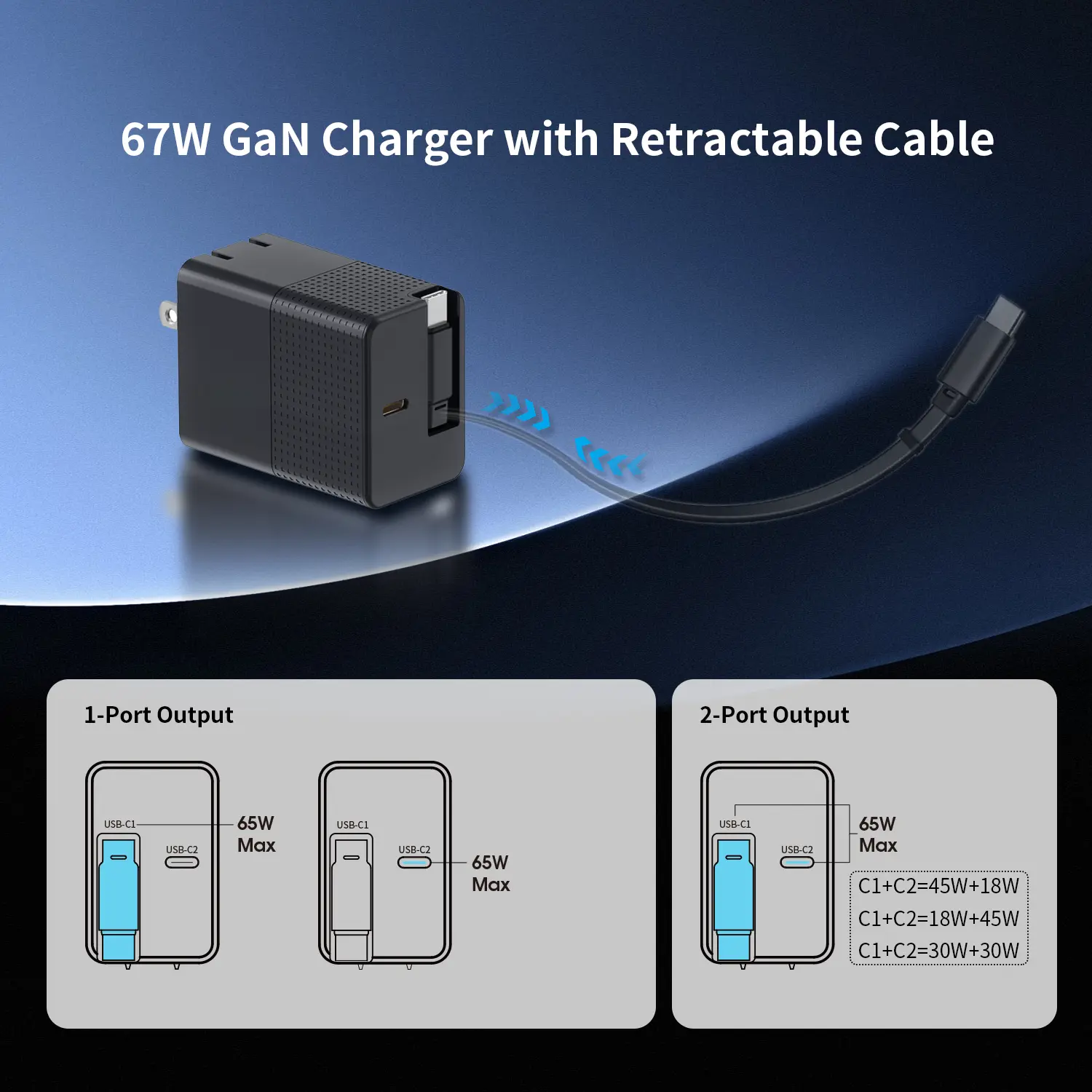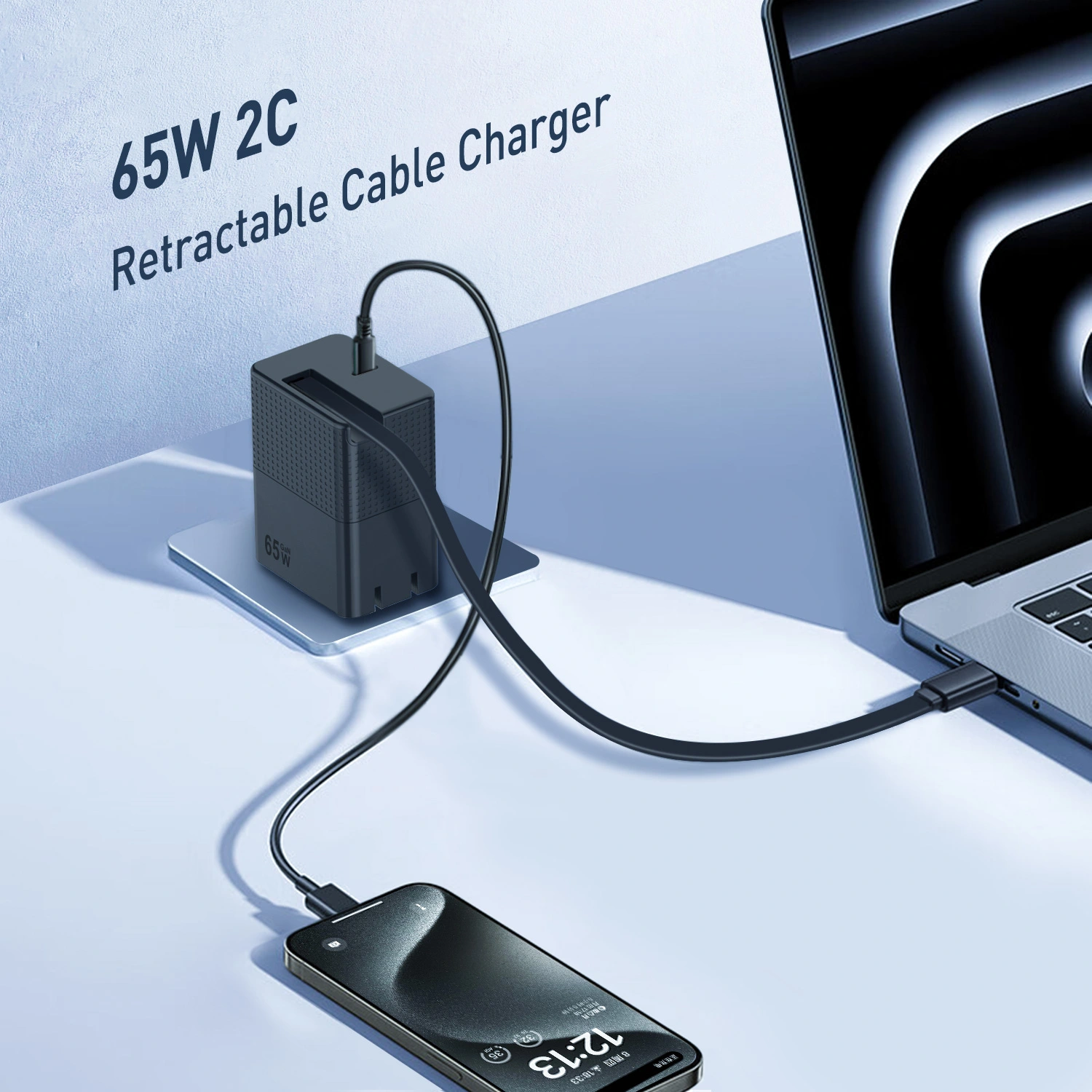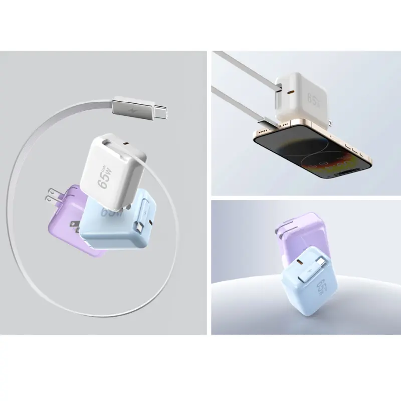 Bộ sạc PD 65W có cáp usb c có thể kéo được |