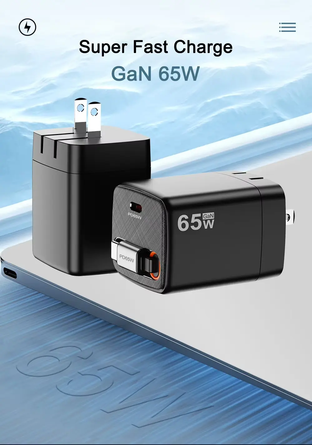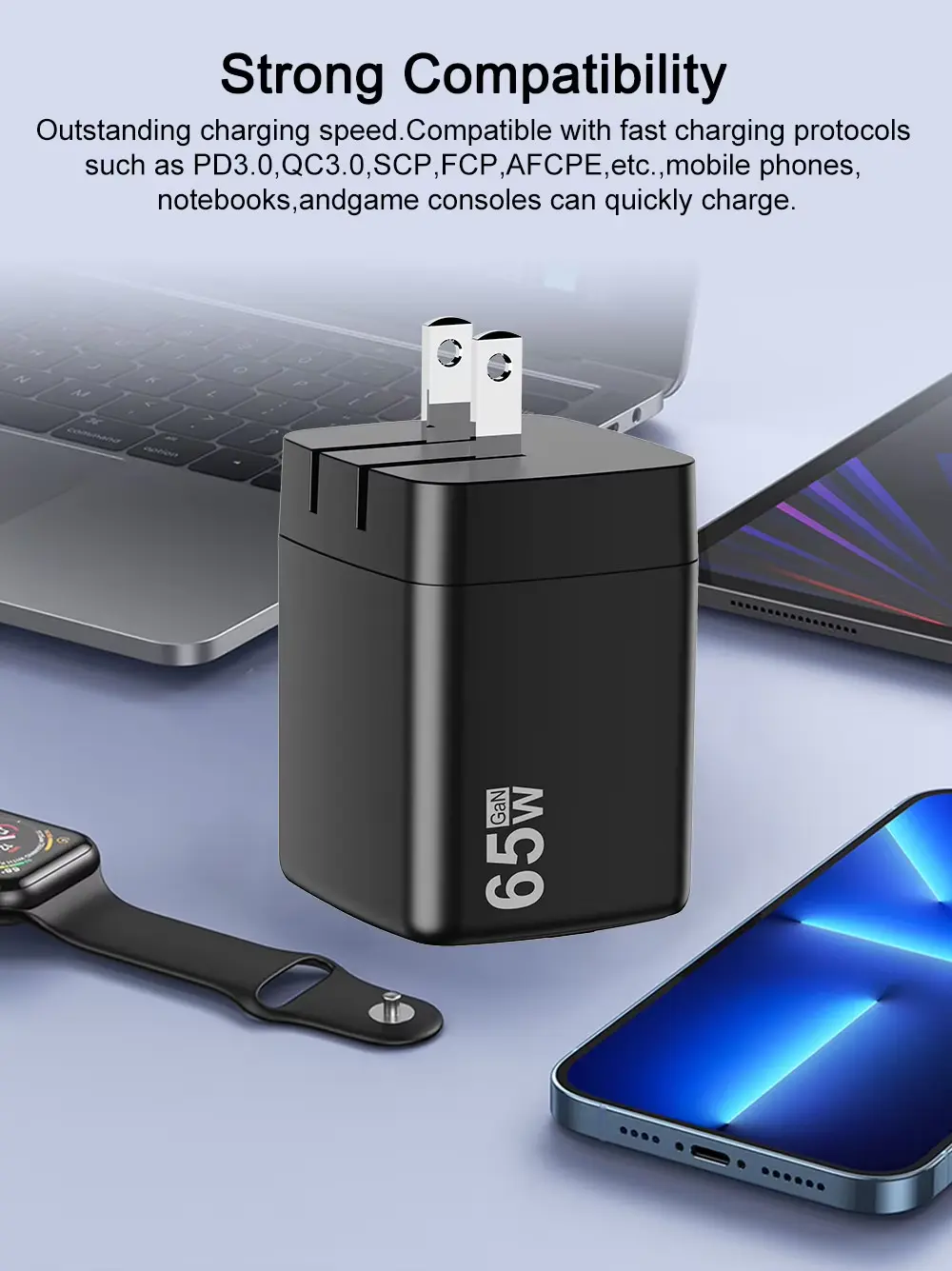Có Thể Tùy Chỉnh Logo Mini 65W PD Gan USB C Có Thể Gập Lại Phích Cắm US USB Du Lịch Sạc Điện Thoại |
