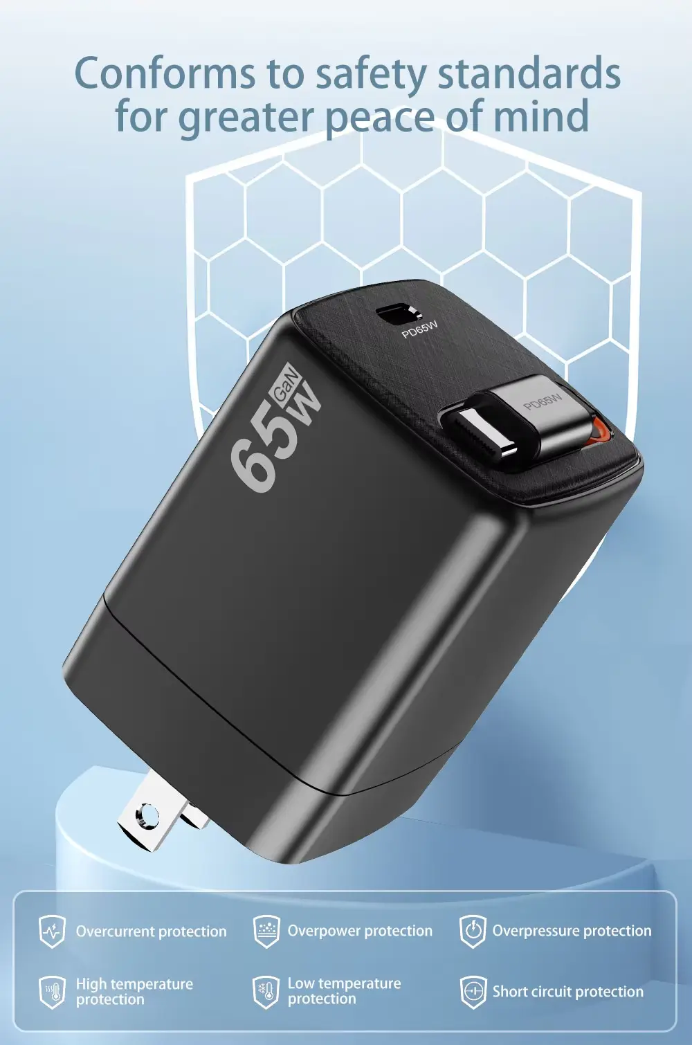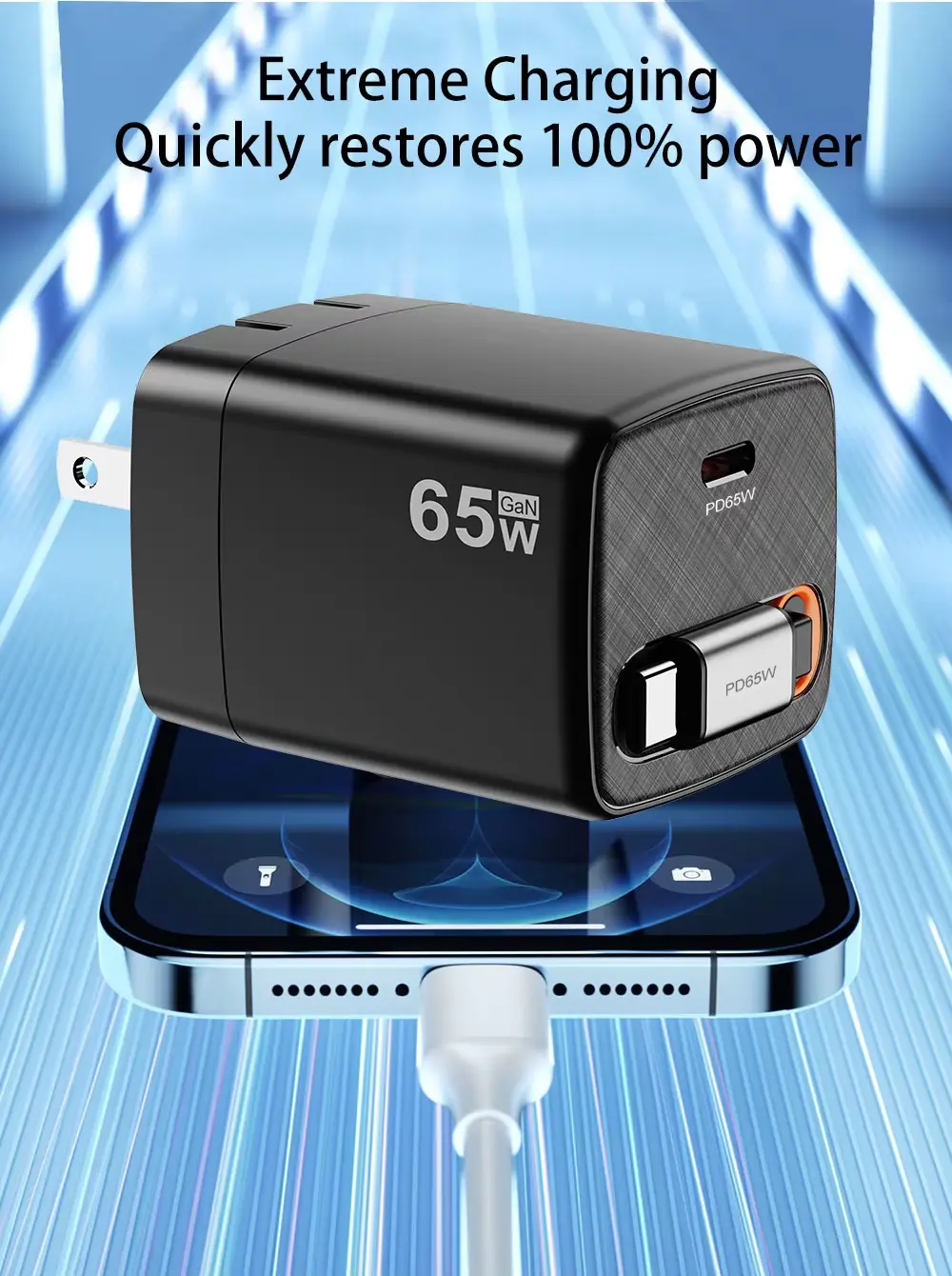 Sạc 65W tốc độ cao: Cung cấp năng lượng cho máy tính xách tay và điện thoại sạc nhanh.