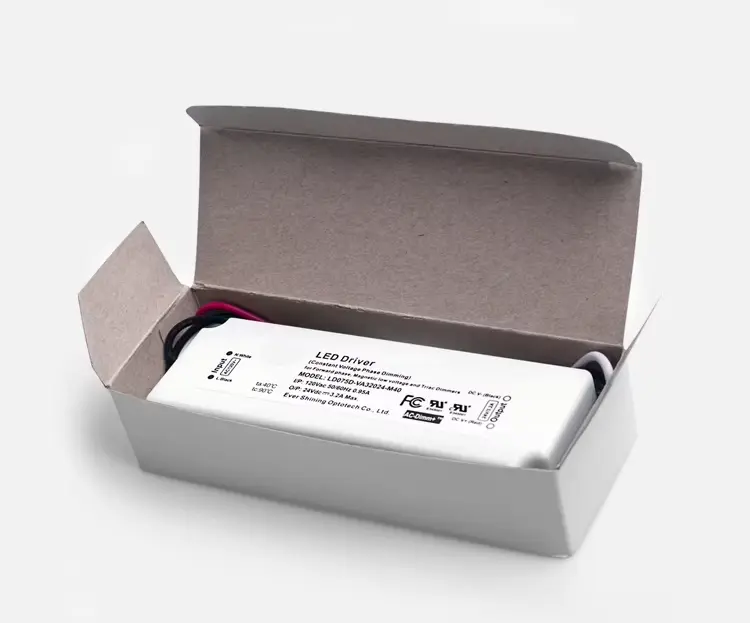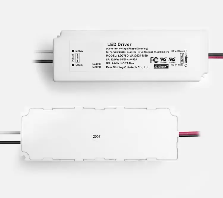 Trình điều khiển LED điện áp không đổi 75W với TRIAC Dimming • Khả năng tương thích: Hoạt động với hầu hết các bộ điều chỉnh độ sáng kiểu TRIAC/sợi đốt tiêu chuẩn. • Đầu ra ổn định: Điện áp không đổi (CV) cho hệ thống đèn LED 12V hoặc 24V. • Điều khiển mượt mà: Cho phép làm mờ toàn dải, không nhấp nháy. • Bảo vệ chắc chắn: Các biện pháp bảo vệ tích hợp chống lại các sự cố về điện. • Cách sử dụng thông thường: Hoàn hảo cho các dải đèn LED, mô-đun và đèn chiếu sáng có thể điều chỉnh độ sáng.