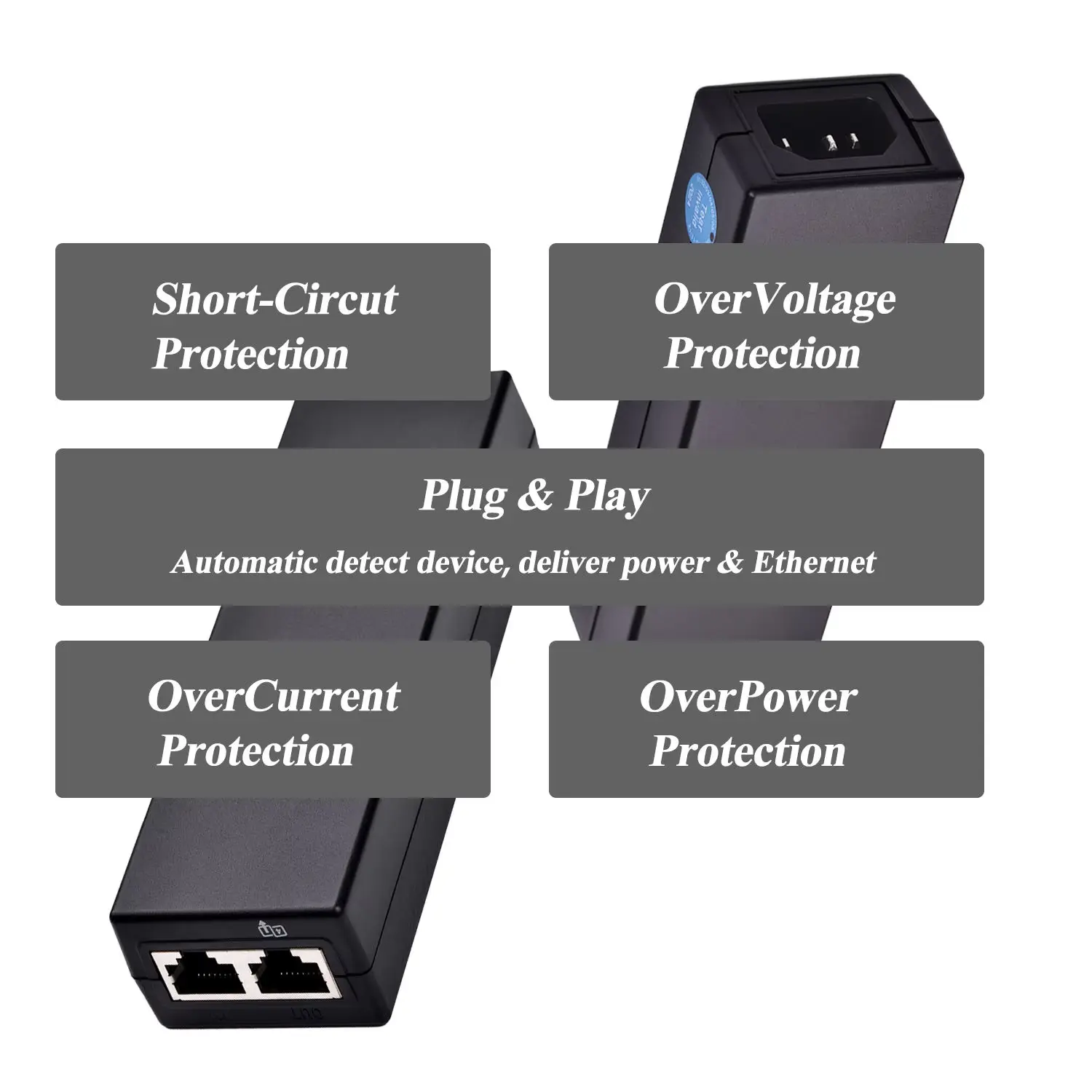 Công suất đầu ra cao: Hỗ trợ công suất lên tới 30W, cấp nguồn và kết nối hiệu quả các thiết bị mạng như camera IP, AP không dây và điện thoại VoIP.