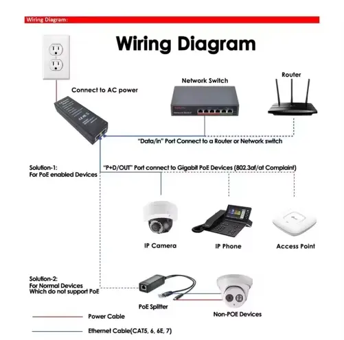 Tích hợp nguồn & dữ liệu: Cung cấp nguồn điện 48V ổn định và dữ liệu 1000Mbps đầy đủ qua một cáp Ethernet, loại bỏ các ổ cắm điện và dây nối thêm để triển khai sạch hơn.