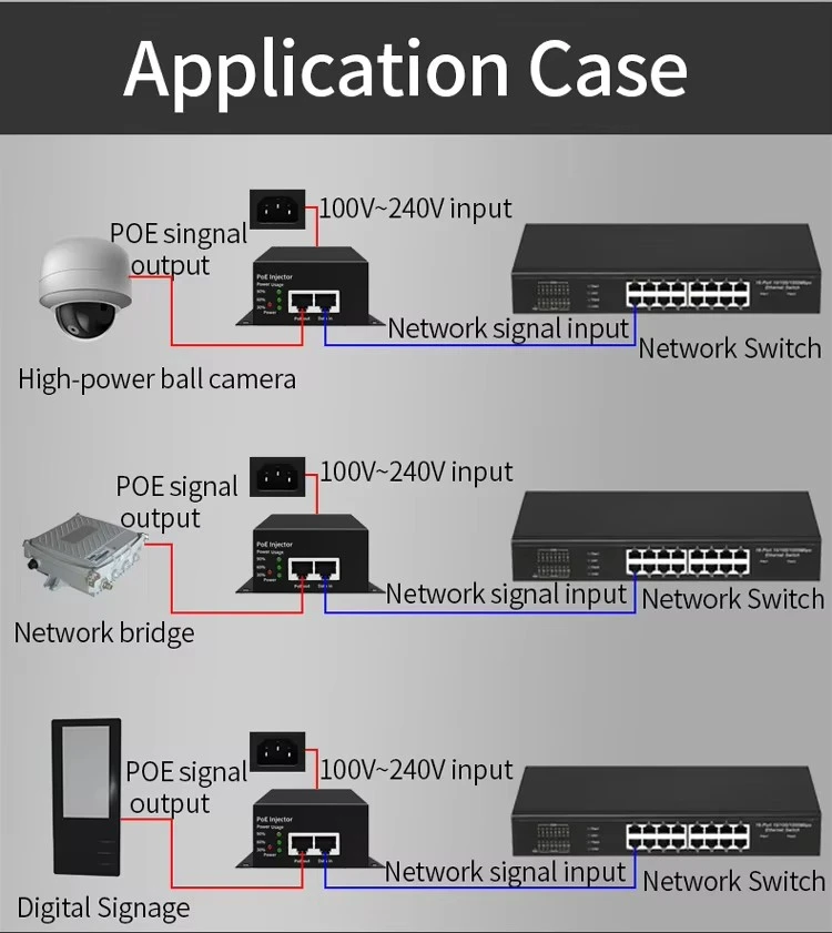 Được thiết kế để mang lại tính linh hoạt, bộ tiêm này tương thích ngược với các thiết bị 802.3af/at. Nó lý tưởng để cấp nguồn cho camera PTZ, điểm truy cập không dây hiệu suất cao và thiết bị hội nghị truyền hình. Sản phẩm cung cấp giải pháp cắm và chạy đơn giản, loại bỏ nhu cầu sử dụng thêm ổ cắm điện và giảm độ phức tạp khi lắp đặt trong các ứng dụng doanh nghiệp và công nghiệp.