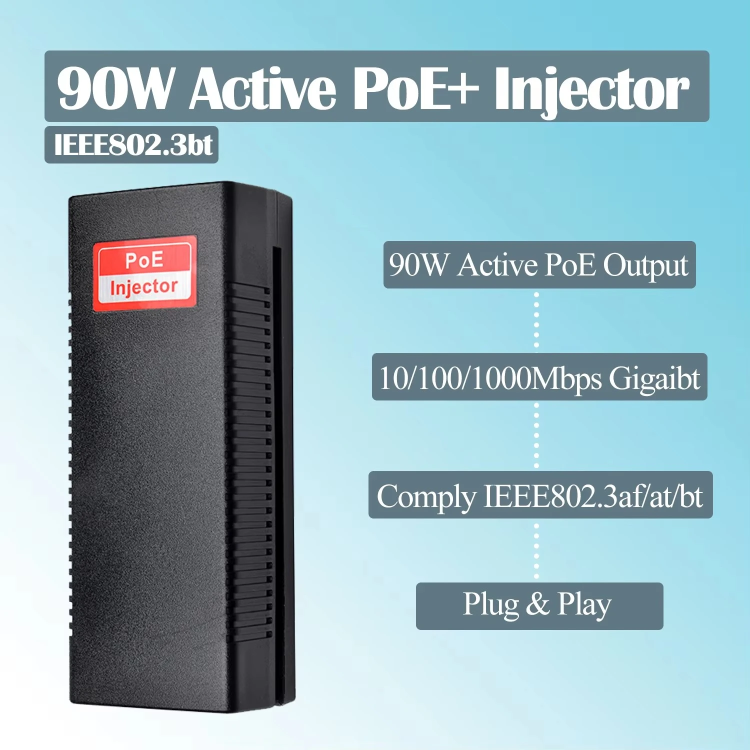 STARWELL OEM PoE Injector Gigabit 48V 90W PoE Injector cho Camera IP là giải pháp Gigabit Power over Ethernet (PoE) hiệu suất cao được thiết kế cho môi trường mạng vừa và nhỏ. Nó có tính năng: