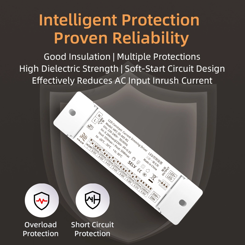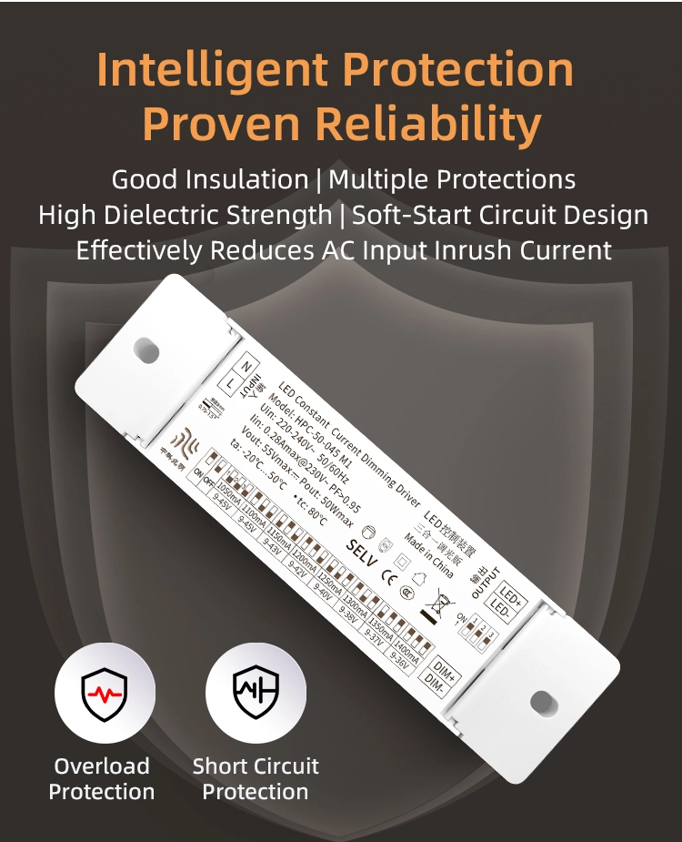 Thiết kế đa bảo vệ: Được xây dựng với bốn cơ chế bảo vệ: quá điện áp (ngưỡng bảo vệ ≥55V), quá dòng (ngưỡng bảo vệ ≥0,18A), đoản mạch và quá nhiệt (nhiệt độ bảo vệ ≥110oC). Nó có thể nhanh chóng cắt đầu ra trong trường hợp điều kiện làm việc bất thường để bảo vệ trình điều khiển và nguồn sáng LED khỏi bị hư hại.