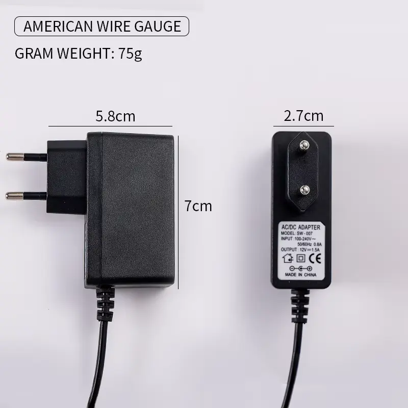 Bộ đổi nguồn chuyển mạch gắn tường chất lượng cao của Starwell ở EU là bộ chuyển đổi nguồn chuyển mạch cắm trên tường nhỏ gọn, hiệu quả cao, được thiết kế để chuyển đổi dòng điện xoay chiều (AC) từ ổ cắm trên tường tiêu chuẩn thành đầu ra Dòng điện một chiều (DC) 12 Vôn ổn định và được điều chỉnh. Với công suất đầu ra tối đa 1,5 Ampe.