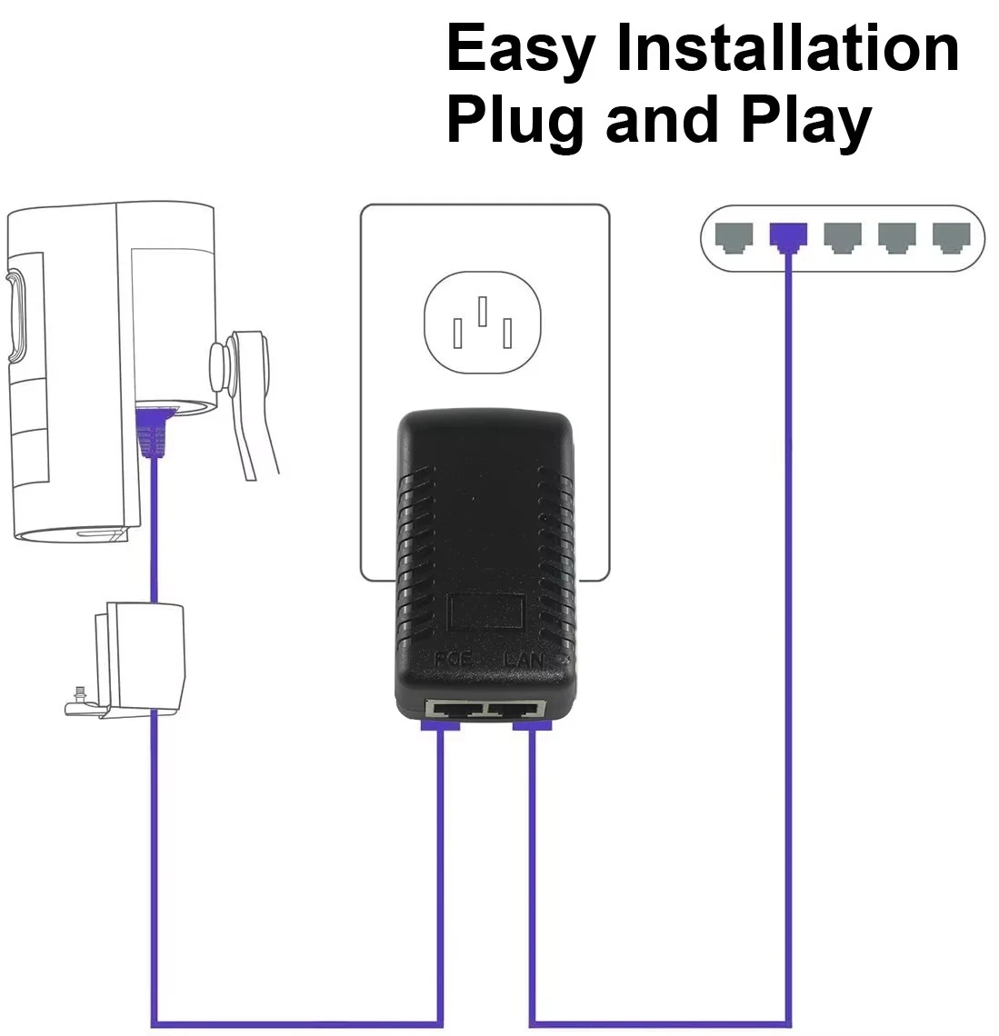 · Cắm và Chạy: Không cần cấu hình. Chỉ cần kết nối cáp LAN từ bộ chuyển mạch và cáp PoE với thiết bị của bạn.