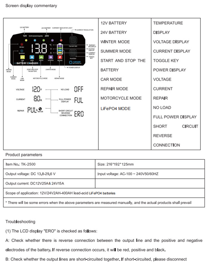 Giao diện thân thiện với người dùng: Màn hình LED sáng, rõ ràng cho biết trực quan trạng thái sạc, tình trạng pin và mọi lỗi tiềm ẩn, giúp bạn có toàn quyền kiểm soát.