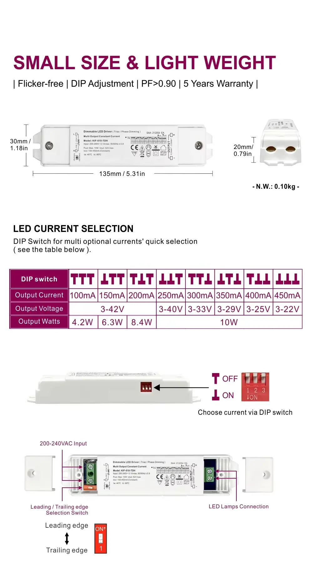 Dòng điện ổn định và bảo vệ liên tục: Duy trì đầu ra dòng điện ổn định, chính xác cho mô-đun LED của bạn, đảm bảo độ sáng ổn định, độ đồng nhất màu sắc và kéo dài tuổi thọ đèn LED bằng cách bảo vệ chống lại sự biến động và đột biến hiện tại.