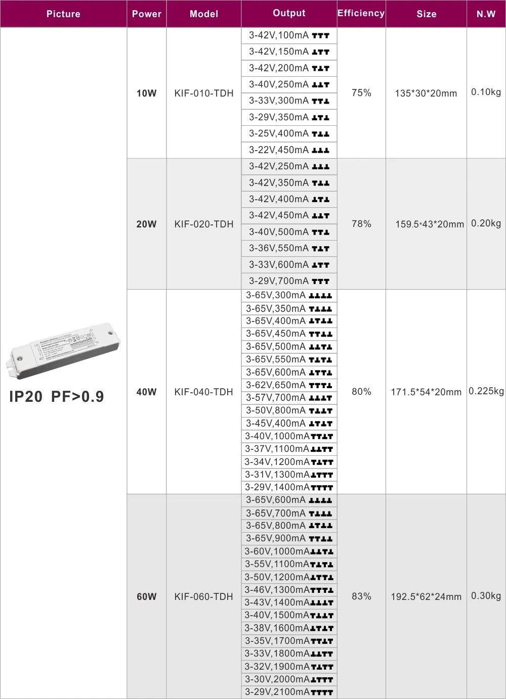 Công suất mạnh mẽ và hiệu suất cao: Với Hiệu chỉnh hệ số công suất cao (PF>0,9) và Độ méo hài tổng (THD) thấp, trình điều khiển của chúng tôi đáp ứng các yêu cầu về hiệu suất năng lượng toàn cầu, giảm tải cho hệ thống điện của bạn và vận hành với hiệu suất mát mẻ, đáng tin cậy.